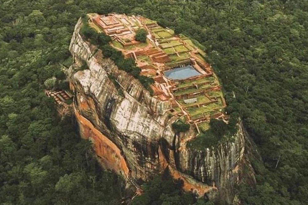 Lion Rock, frescoes, water gardens, and palace ruins.